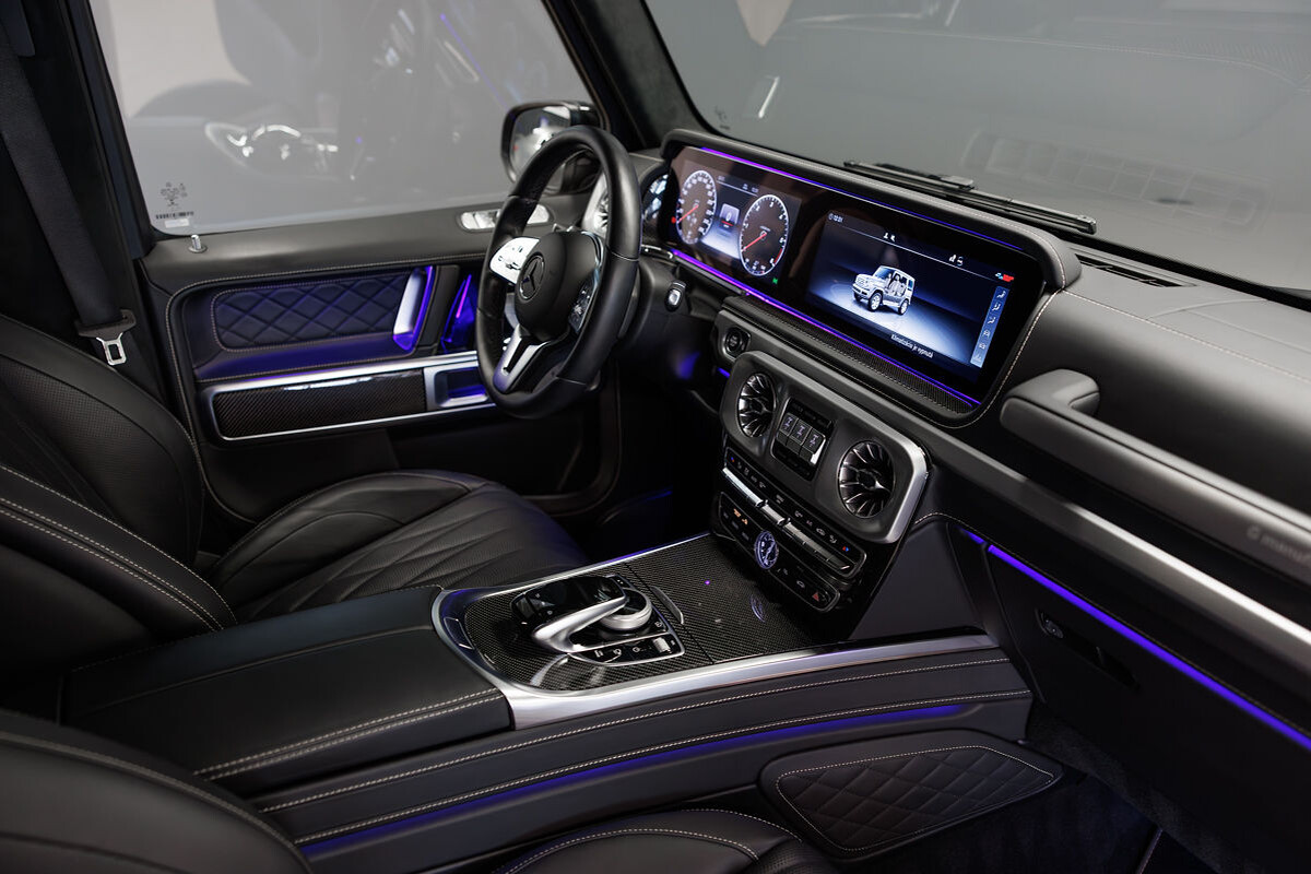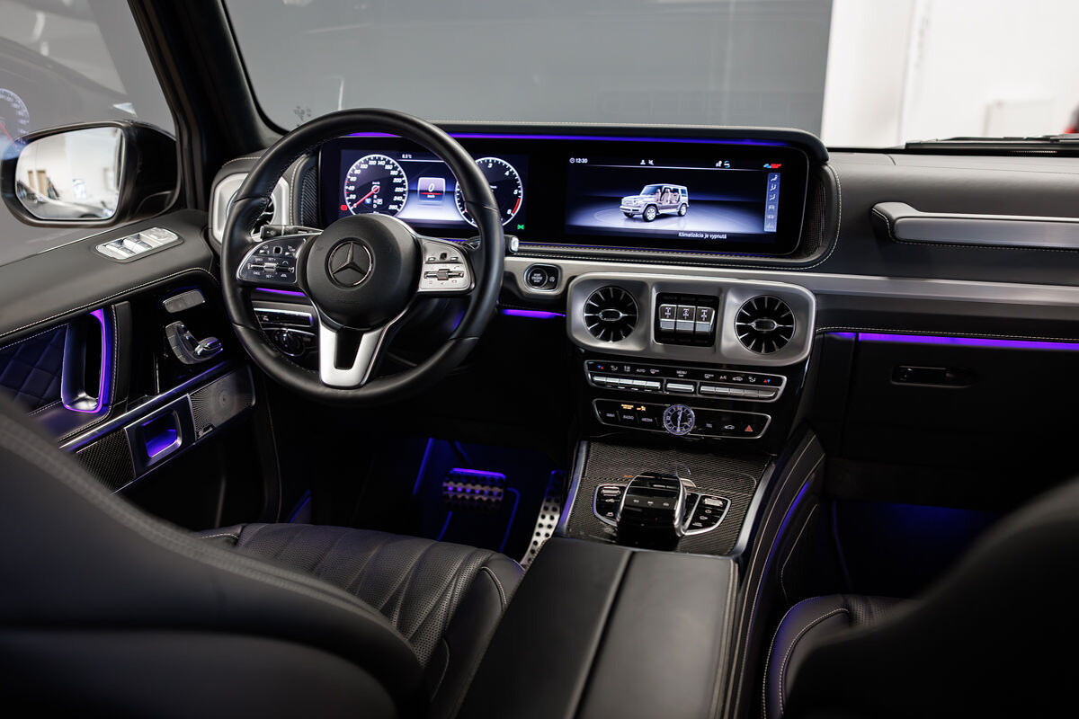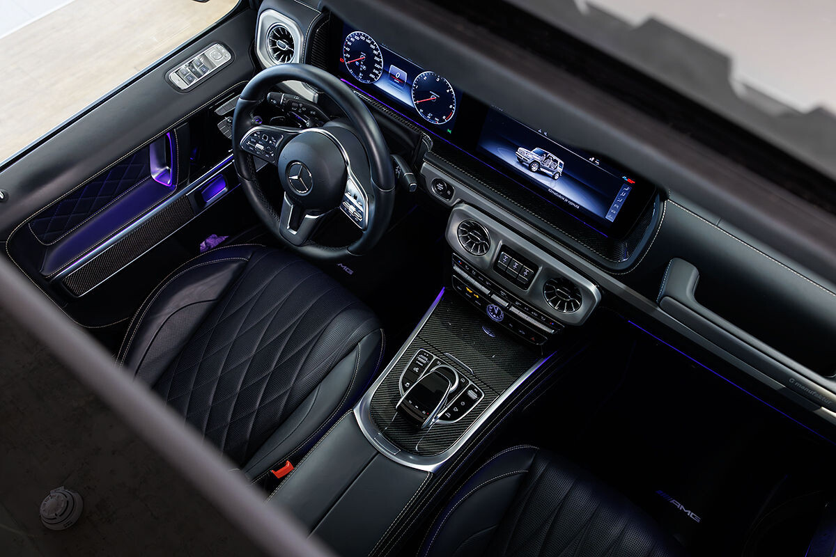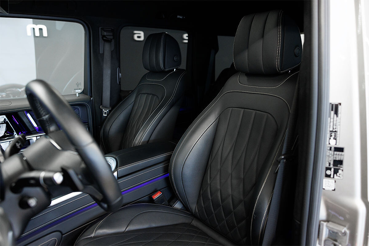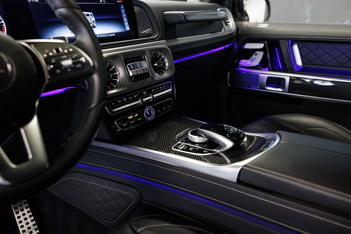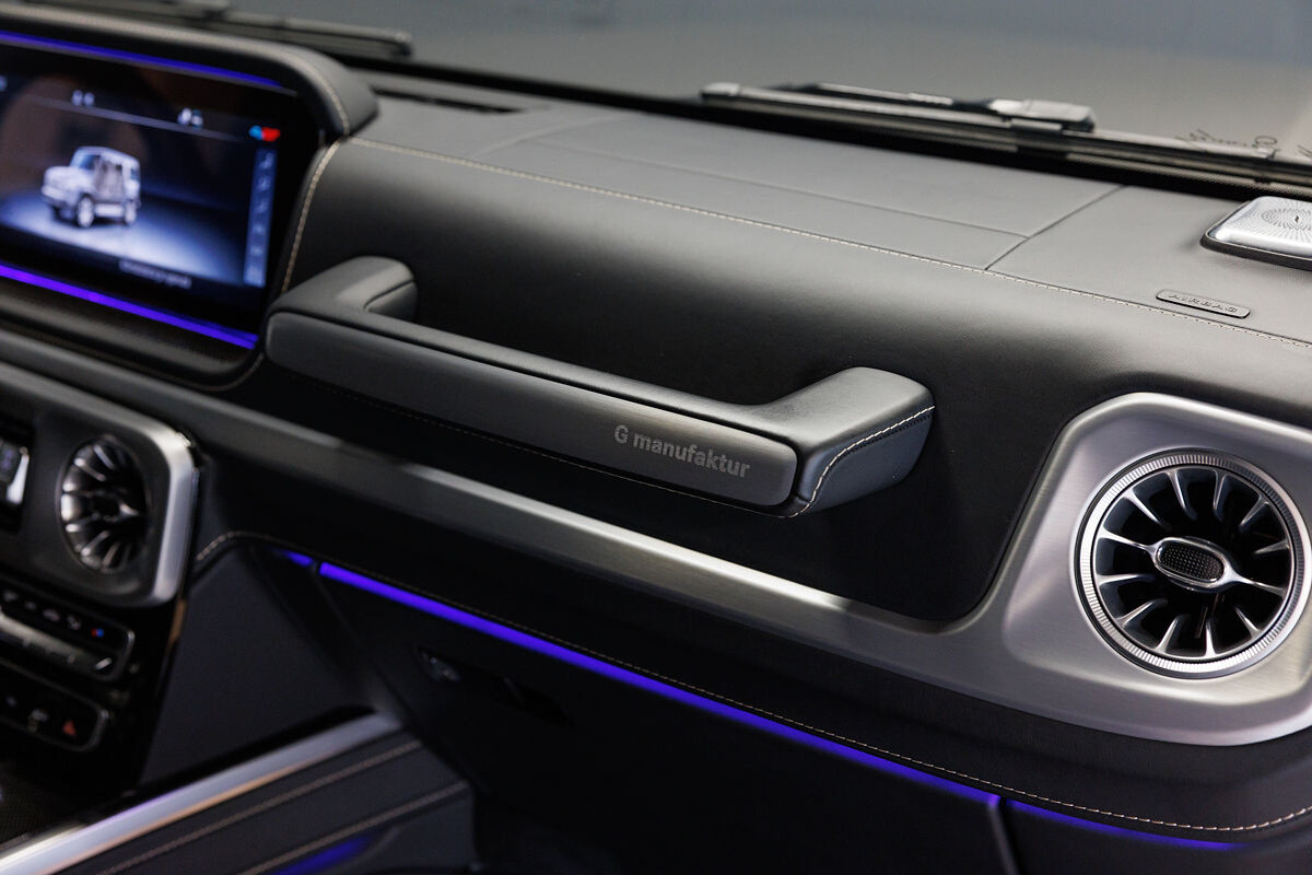 - exkluzívny kožený interiér G Manufaktur s ozdobným prešívaním