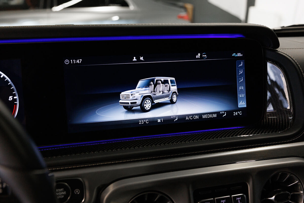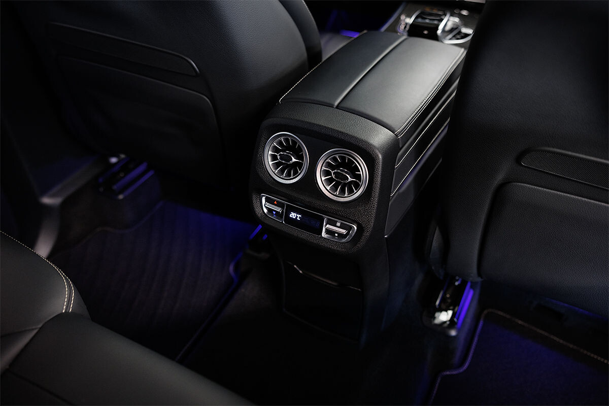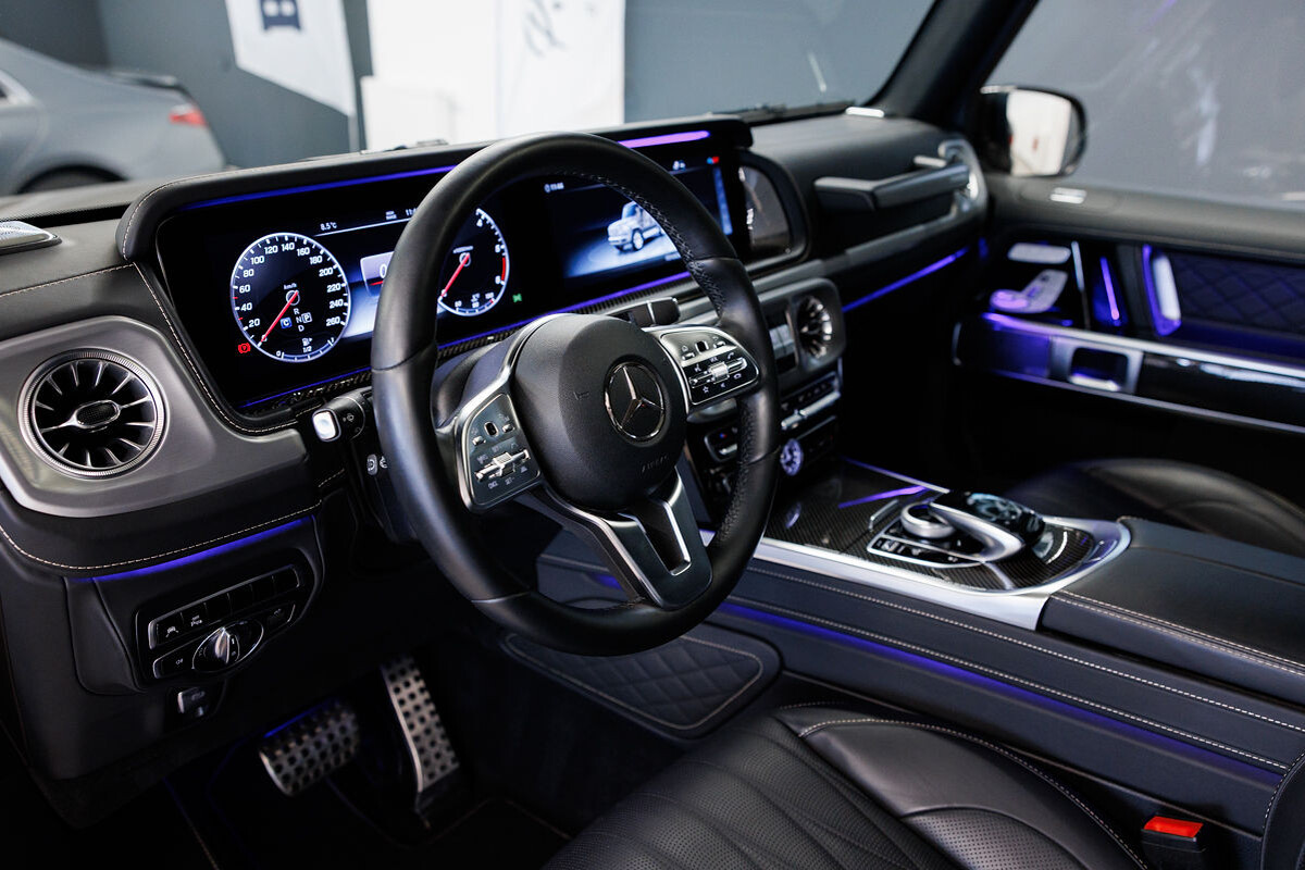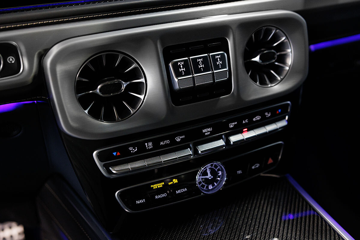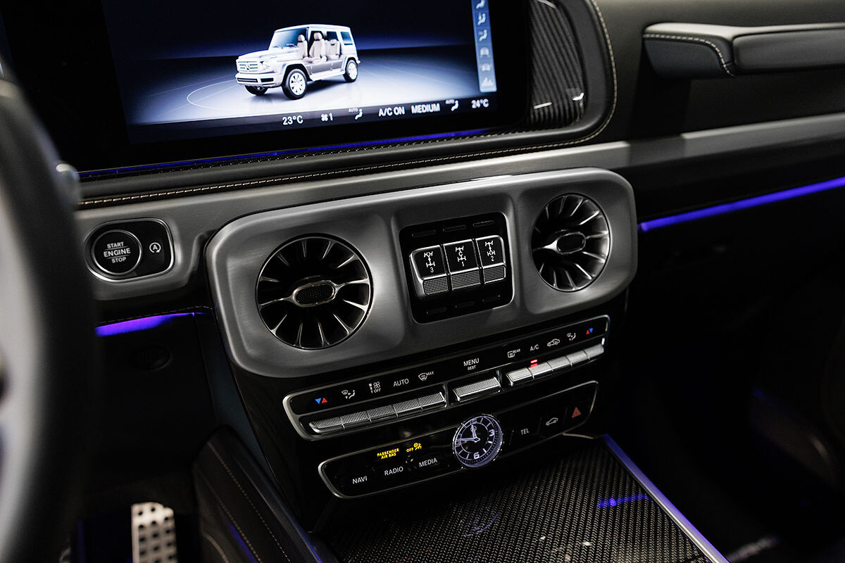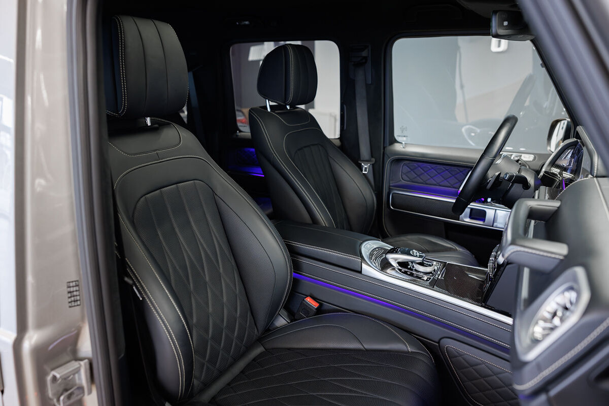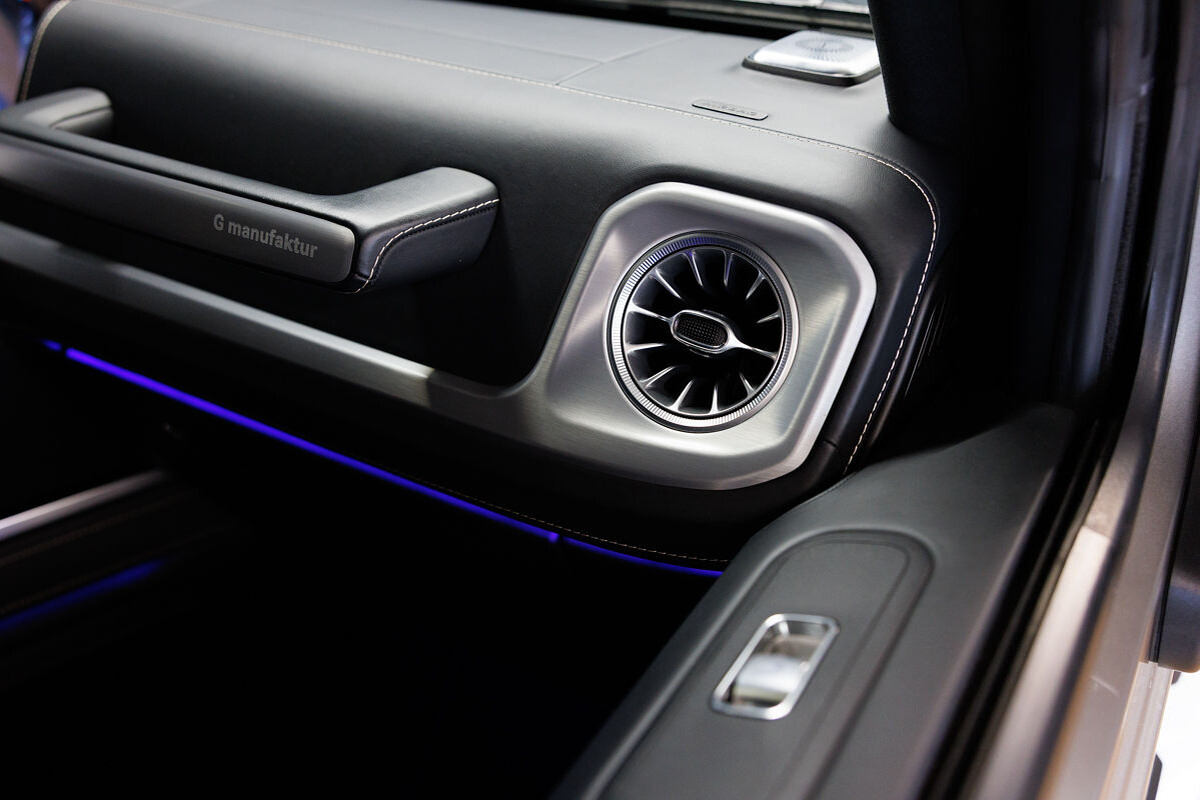 - exkluzívny kožený interiér G Manufaktur s ozdobným prešívaním